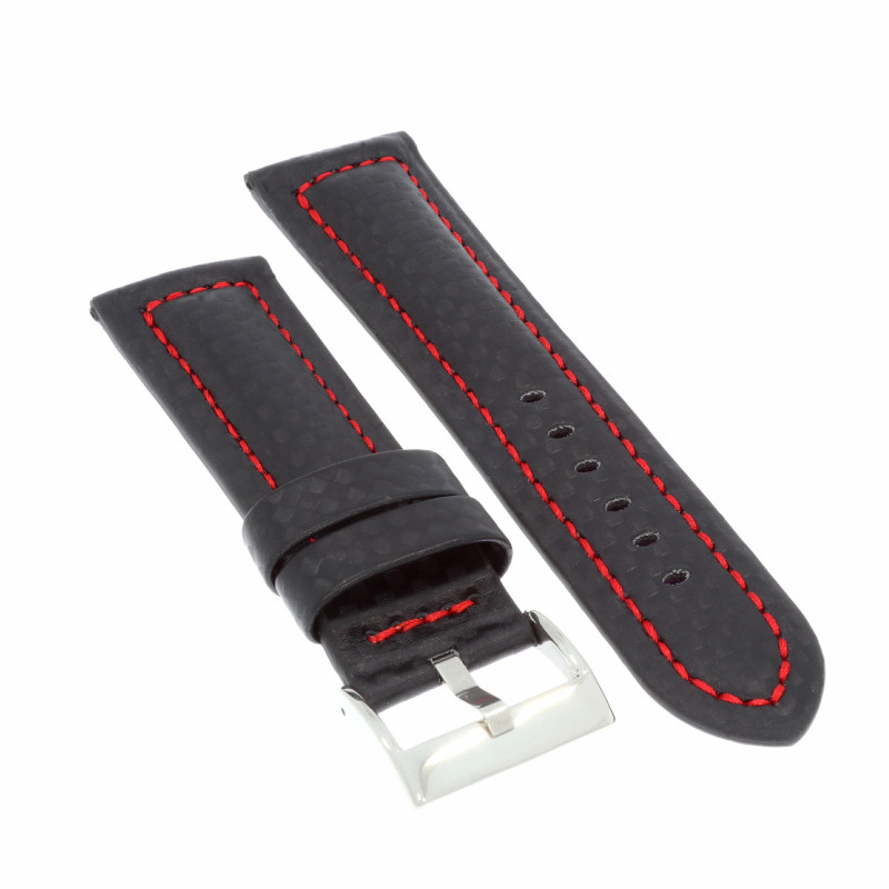 POWIERZCHNIA PASKA: IMITACJA WŁÓKNA KARBONOWEGO, WYPUKŁA Z SZYCIEM CZERWONYM